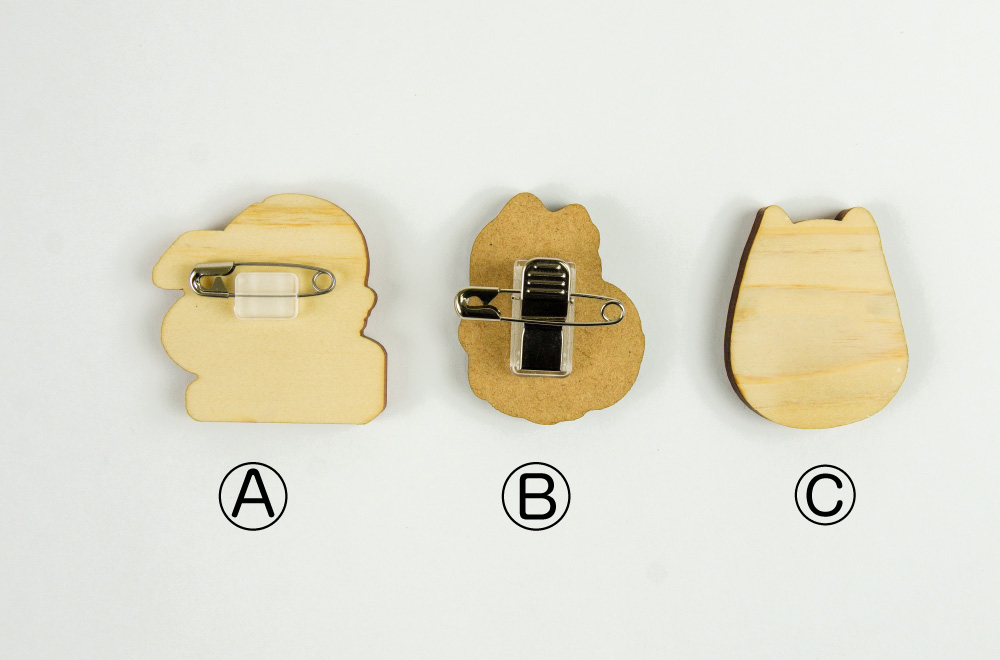 | 加工 | 背面に留め具の加工付き Ⓐブローチピン、Ⓑクリップ付ピン、Ⓒ背面金具なし |