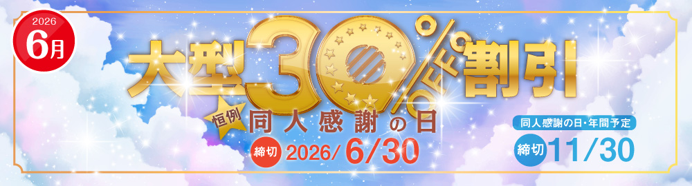 ※注文時のキャンペーン欄で「同人誌感謝の日30%割引」「同人誌感謝の日バリュープライス15%割引」をお選びください。
