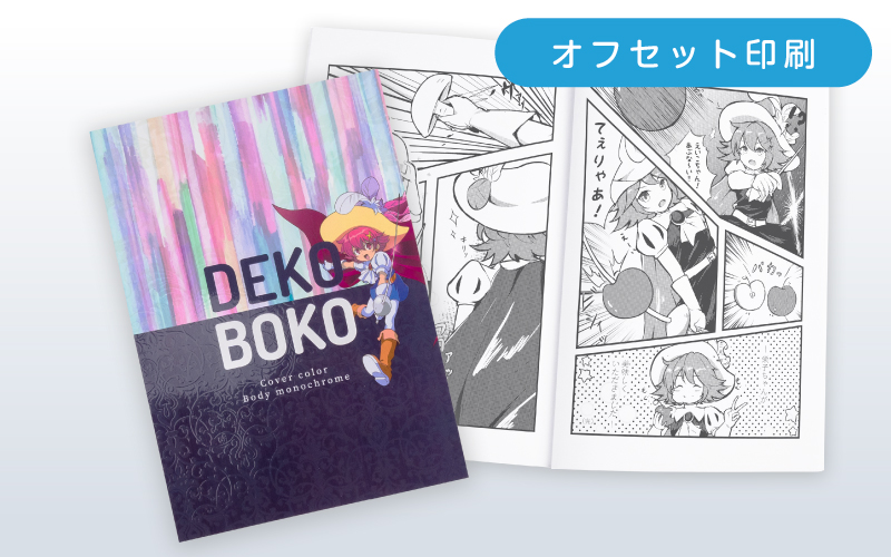 同人誌印刷でも人気の擬似エンボスニス加工、フルカラー表紙をデコボコに!手触りまで新しくて、アピール効果大まちがいなし!アイデア次第で個性的な作品に仕上がります。
