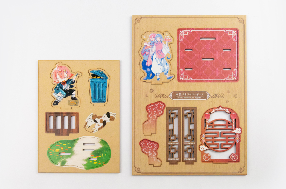 アクスタのジオラマが自由にデザインできる。小さなパーツをたくさん並べることも、プレートをめいっぱい使って大型ポップ、スタンドにすることも自由です。アクリルジオラマフィギュアなどグッズの幅が広がります。
