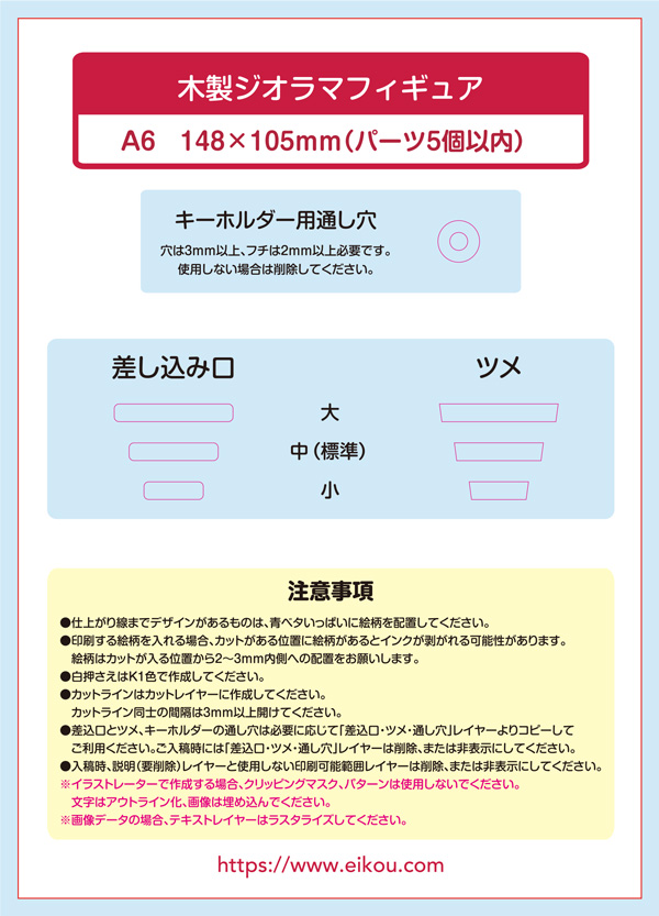 | サイズ | A5 (パーツ10個以内) A6(パーツ5個以内) |