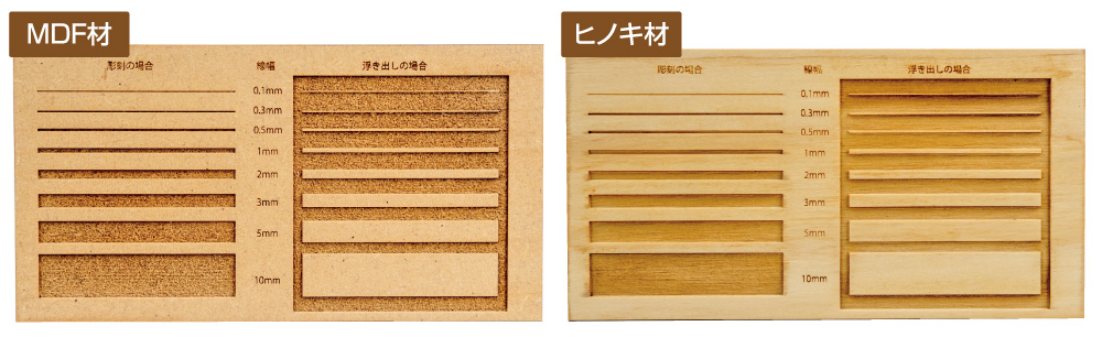 断面の焦げ跡は MDFとヒノキでは 焦げ色が違います。