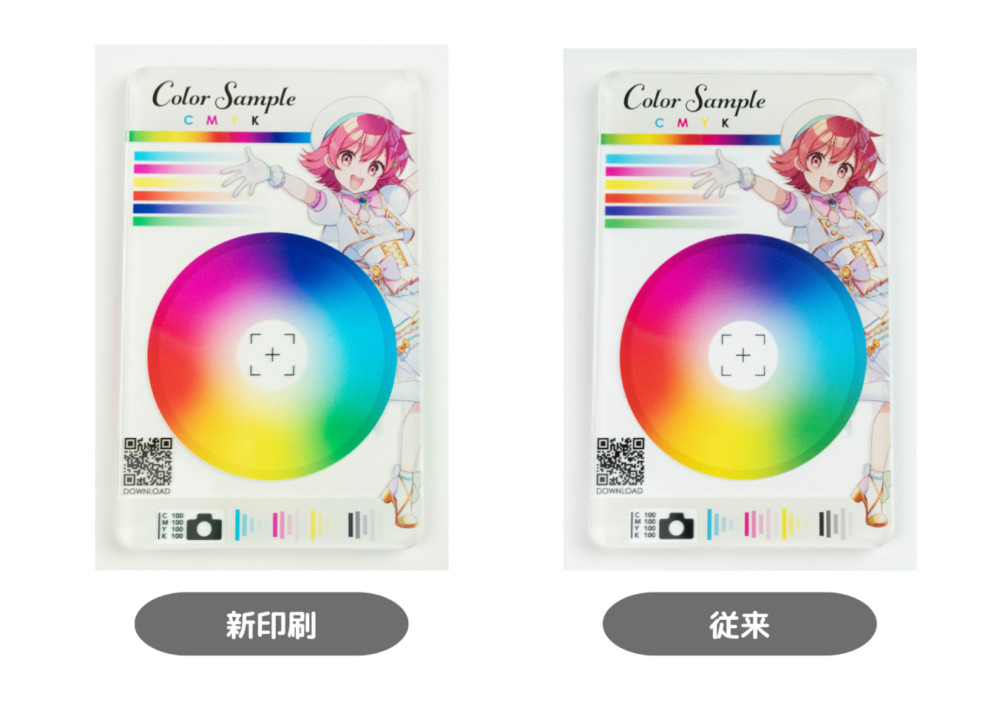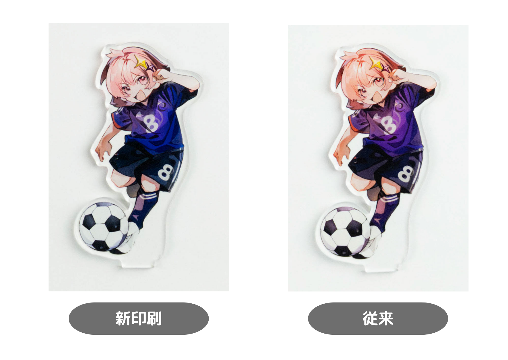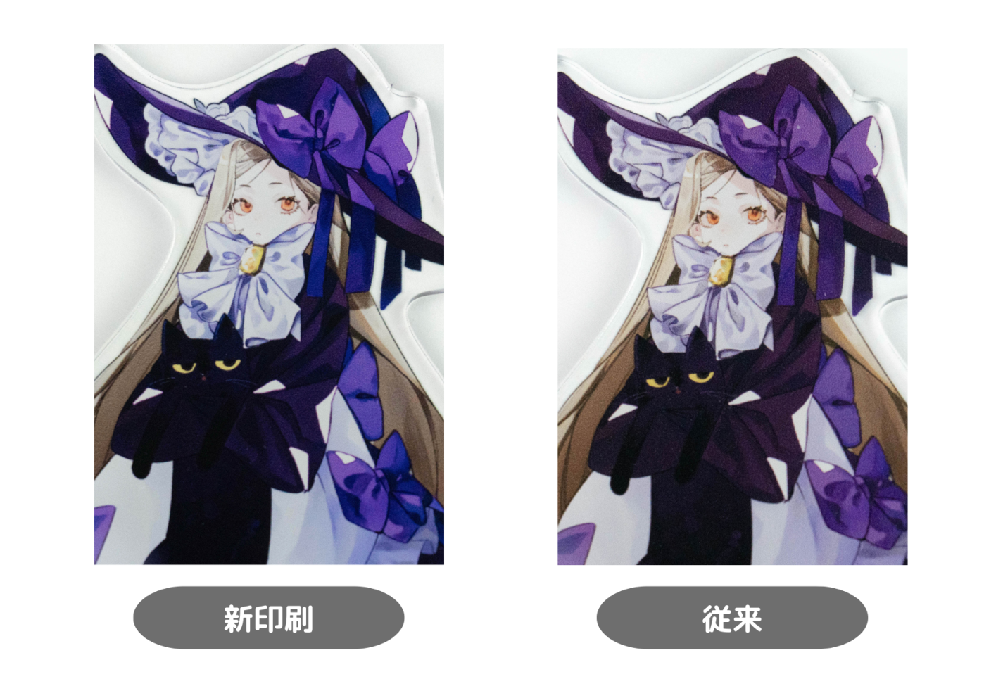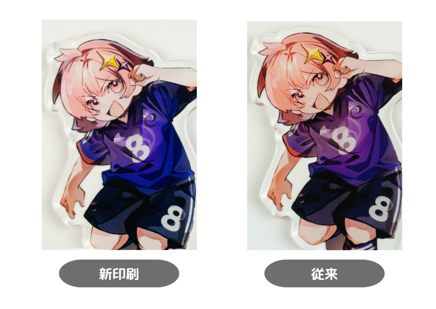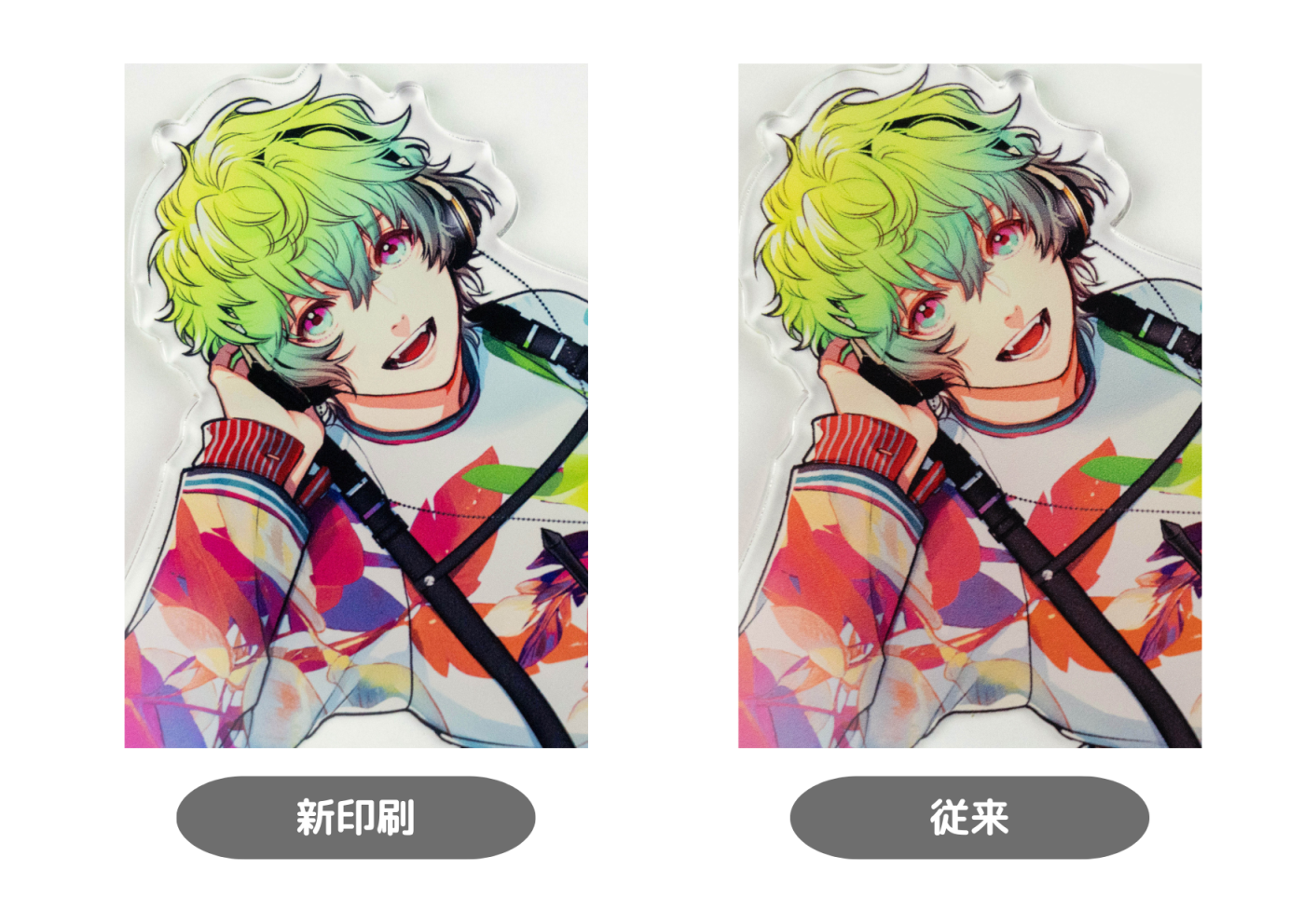 アクリルキーホルダーやアクリルスタンド等の【アクリル素材】商品につきまして、2月9日0時ご入稿分より印刷色が従来の色味から少し変わります。