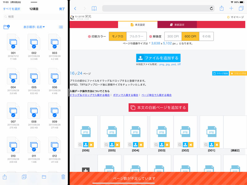 iPadをご利用のお客様は、Spilitview(画面分割)にてご入稿ください。